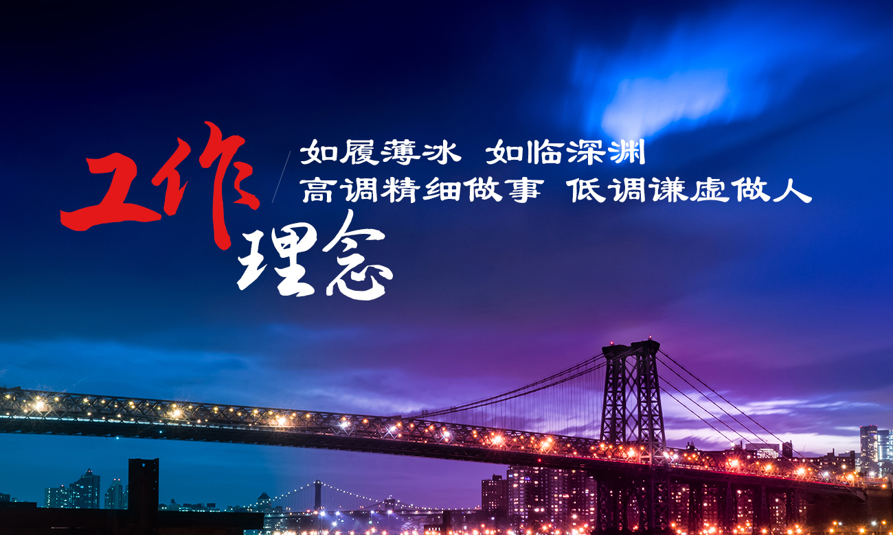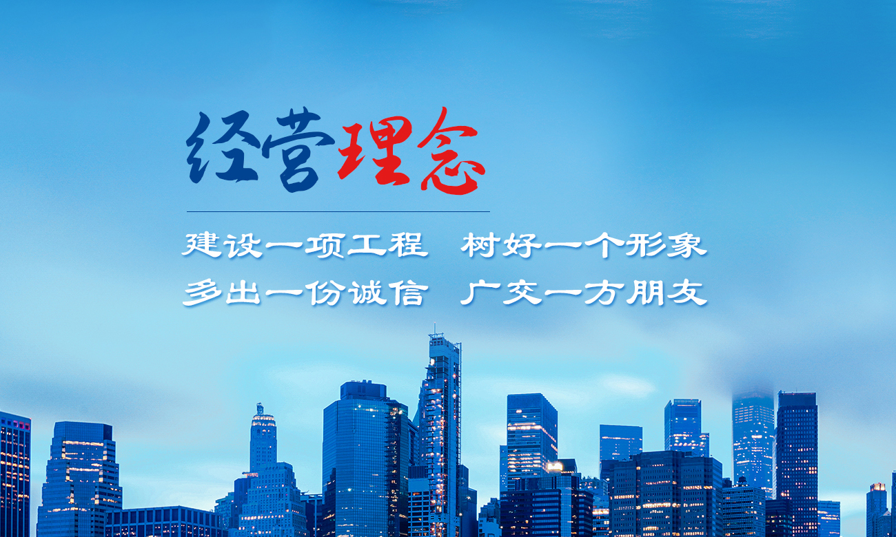 公司以建造合格建筑產(chǎn)品、助力國家建設為使命,以構建幸福企業(yè)為愿景。公司深知助力國家建設為使命所擔負的責任,故以“如履薄冰、如臨深淵、高調精細做事、低調謙虛做人”為工作理念,建立了完善的管理制度和質量保障體系,以人為本,構建和諧環(huán)境。公司牢固樹立安全意識、文明意識、質量意識、環(huán)境意識和精品意識。在公司質量管理過程中貫徹“雙百”方針:即工程合格率100%,客戶滿意率100%。以“建設一項工程,樹好一個形象,多出一份誠信,廣交一方朋友”為公司經(jīng)營理念。